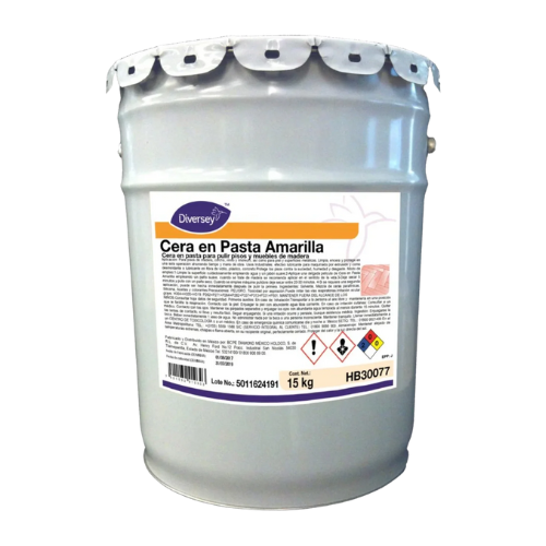 Nutre, protege y da un acabado clásico a tus superficies con la Cera en Pasta Amarilla de Diversey. Esta fórmula tradicional 3 en 1 limpia, encera y protege en una sola operación, renovando la apariencia de pisos y muebles. Es la solución ideal para el cuidado de pisos de madera, corcho, vinilo y linóleo, y también es perfecta para proteger y renovar superficies metálicas y de piel.
